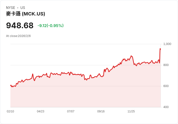McKesson Corporation是一家全球領先的醫療保健服務和資訊技術公司,專注於提供藥品分銷、醫療供應鏈管理以及生物製藥服務。公司致力於透過創新和卓越運營來改善患者健康結果,並在腫瘤學和多專科領域擁有強大的市場地位。