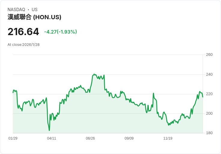 霍尼韋爾國際公司發布第四季財報,非GAAP每股盈餘超預期,但營收略低於預期,並對2026年調整後每股盈餘給出樂觀指引。