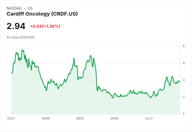卡迪夫生技公司(Cardiff Oncology, CRDF)在週二經歷重大領導層變動後,股價驟降約35%,創下52週新低。該公司宣佈其首席執行官馬克·厄爾蘭德(Mark Erlander)和首席財務官詹姆斯·萊文(James Levine)均已辭職,令市場感到不安。為了穩定局勢,公司隨即任命資深生技專家瑪尼·莫欣杜(Mani Mohindru)為臨時CEO,他自2021年以來一直擔任董事會成員。
