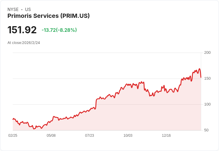 Primoris Services 公佈 2026 年財報預測,同時報告歷史新高的業務後臺及收入增長,顯示公司在可再生能源和天然氣發電方面的強勁需求。
