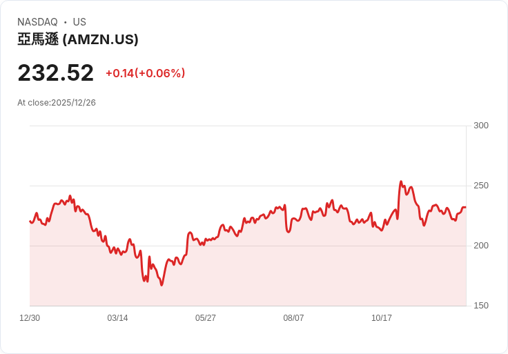 儘管2025年表現不佳,分析師預測亞馬遜(AMZN)將於2026年迎來約50%的股價上漲空間,主要受益於雲服務和AI技術的增長。