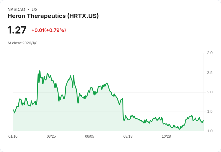 赫隆生技(Heron Therapeutics, HRTX)在週五的交易中股價飆升約14%,原因是該公司發布了2025年第四季和全年未經審計的營收初步資料,這些數字皆超出了分析師的預測。位於北卡羅來納州的這家生技公司預計其第四季度淨收入將達到近4050萬美元,而全年的淨收入則接近1.549億美元,相比之下,分析師預測分別為3980萬美元和1.5415億美元。