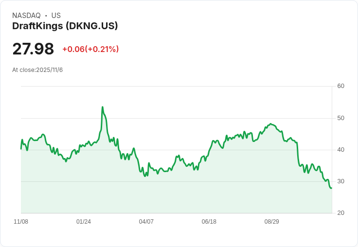 DraftKings是一家領先的數字體育娛樂和遊戲公司,提供日常幻想運動、體育博彩和iGaming等服務。公司成立於2012年,總部位於美國波士頓,致力於為使用者提供創新的遊戲體驗。DraftKings以其強大的技術平臺和廣泛的合作夥伴關係而聞名,並在全球多個市場中擁有穩固的地位。