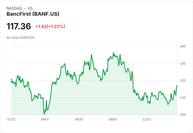 BancFirst發布最新財報,第四季每股盈餘為$1.75,未達市場預期,但營收達$181M,超出預估。