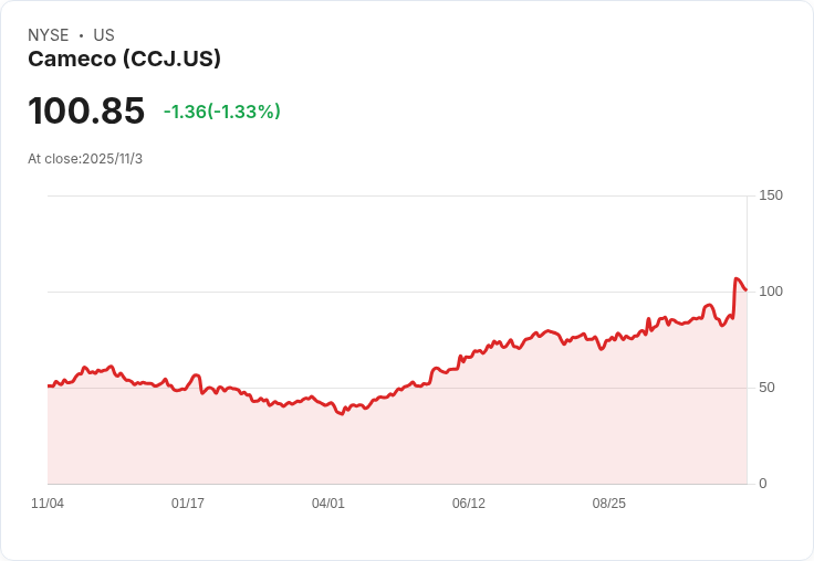 Cameco Corporation (NYSE: CCJ) 最近的股價表現引起市場廣泛關注,從10月24日到31日,其股價驟增15.98%。這家全球最大的鈾燃料供應商之一,正處於核能復興的浪潮之中。此次股價飆升的主要原因,是公司宣佈了一項“變革性”的戰略夥伴關係,將與美國政府共同建設至少800億美元的新核反應堆,並使用Westinghouse Electric Company LLC的技術。