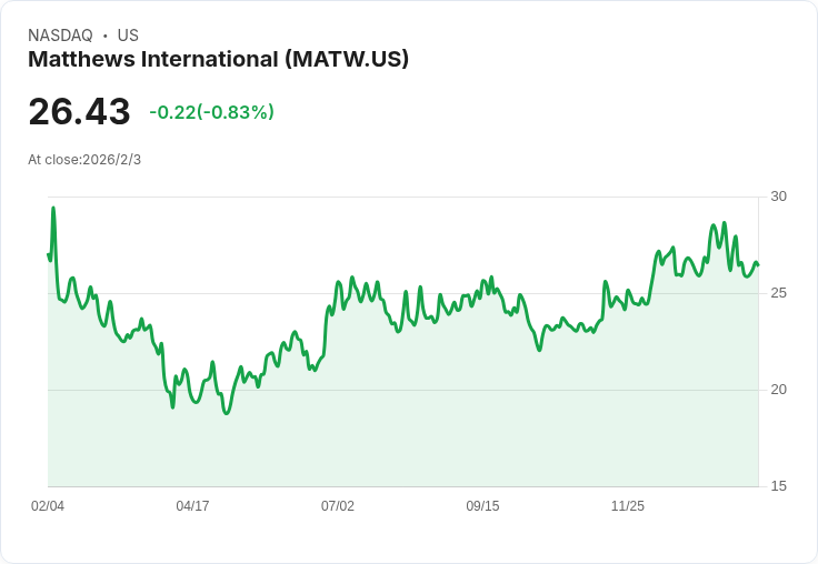 在最近的財報中,Matthews International(MATW)揭示了其2026年第一季的表現。儘管公司報告的非GAAP每股虧損為-0.19美元,未能達到分析師預估的正值,差距高達0.23美元,但其總收入達到了284.7百萬美元,較去年同期下降29.1%,卻仍比市場預期多出2.2百萬美元。