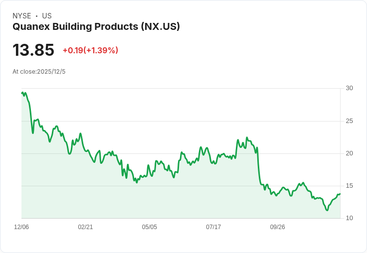 Quanex Building Products 公佈每股 $0.08 的季度股息,將於12月31日支付,以獎勵持股者。