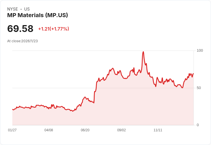 MP Materials作為受益者之一,其股價於週五收盤時上漲至69.58美元,增長1.77%。此趨勢不僅提升了公司的市場表現,也彰顯了政府對加強國內稀土生產的承諾。未來,這一領域可能會吸引更多投資者的注意,因其潛在的經濟影響及安全考量。