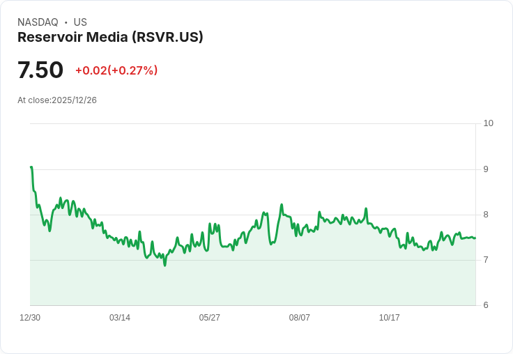 Reservoir Media, Inc.(NASDAQ:RSVR)近期股價波動劇烈,目前在7.50美元附近交易。市場對其未來成長的預期存在不確定性,投資者需謹慎評估。