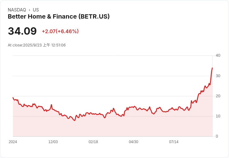 Better Home & Finance (BETR) 的股價在週一早盤迅速翻倍,引發市場關注。這一波漲勢源於激進投資者Eric Jackson在社交媒體上表示該公司是「抵押貸款的Shopify」,並對其前景給予高度評價。BETR開盤報價33.50美元,隨後最高飆升至73美元,最終在午間交易時穩定在60美元左右。