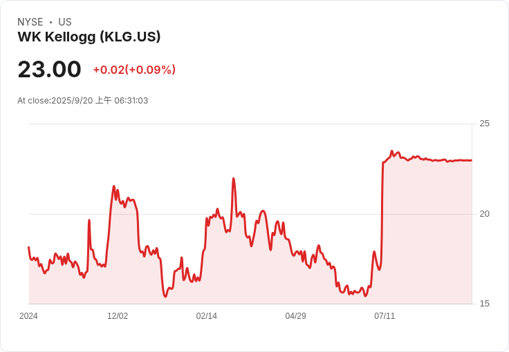 WK Kellogg成立於2023年,當時原本的Kellogg公司將其北美穀物業務與全球零食業務分拆開來。該公司旗下擁有眾多知名品牌,如Frosted Flakes、Rice Krispies及Special K等,這些產品涵蓋了早餐穀物市場。