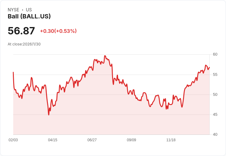 Ball 公司預計於 2 月 3 日公佈 Q4 財報,分析師預測每股盈餘為 $0.90,營收達 $31.1 億。