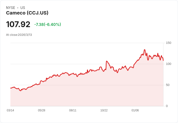 因美國政府考慮與其他公司合作,Cameco股價大幅下滑至兩個月低點,市場擔憂其在核能產業的地位。