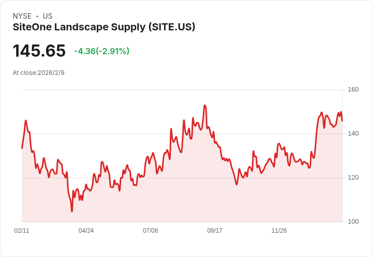 SiteOne Landscape預計於2月11日發布第四季財報,分析師預期每股盈餘為-0.18美元,營收達10.5億美元。