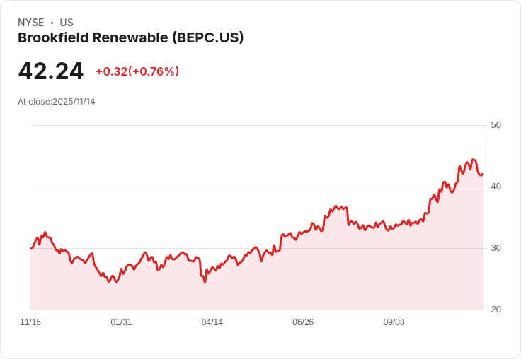 布魯克菲爾德可再生能源公司(Brookfield Renewable Corporation, NYSE:BEPC)近日股價達到多年的新高,引起市場關注。該公司專注於可再生能源及脫碳解決方案,其多元化投資組合涵蓋水力發電、風能、太陽能等領域,遍佈五大洲。