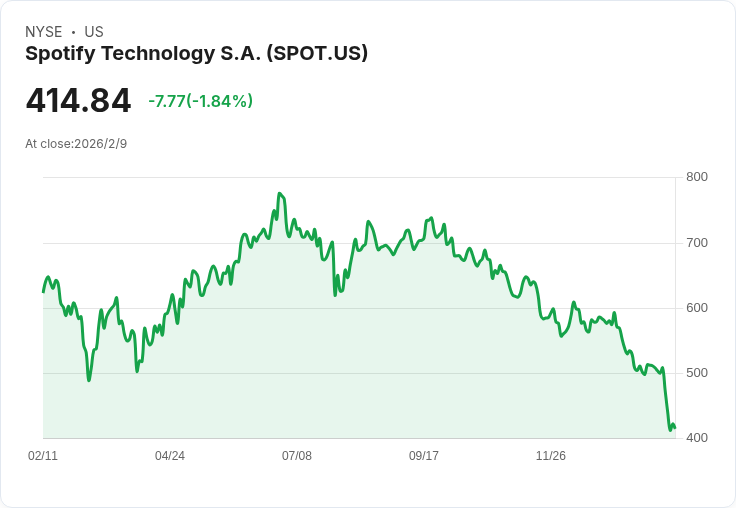 Spotify因用戶數量大幅成長及盈餘表現優於預期,股價上漲15%,創下自2019年以來最佳表現。