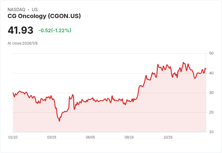 CG Oncology 宣佈其主要產品的晚期臨床試驗將提前至2026年上半年公佈資料,股價應聲上漲。