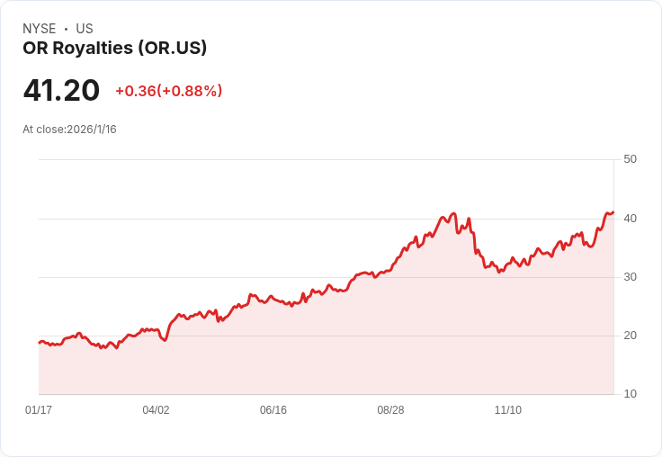 截至1月15日,OR Royalties的股價為40.84美元,市值達到77.5億美元,並且年收入達243.65百萬美元,淨利潤147.95百萬美元。該公司專注於黃金資產的特許權與流通業務,透過收購生產或營收的一部分來獲取穩定而持續的收益。