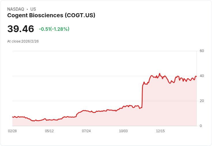分析師對Cogent Biosciences的藥物申請持樂觀態度,目標價從39美元提升至52美元,預期公司將在2026年下半年推出新藥。