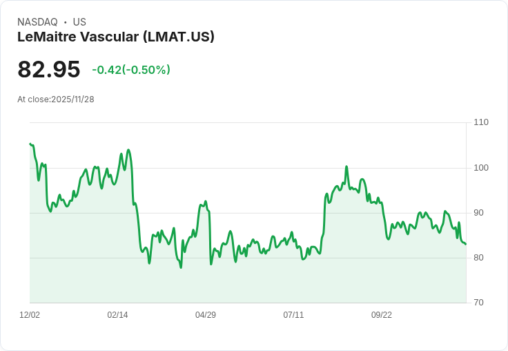 LeMaitre Vascular (LMAT) 股價近期下滑,但長期表現仍然強勁。分析指出,其公允價值為104.78美元,顯示出明顯的低估潛力。