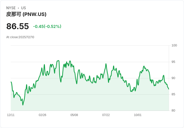 Pinnacle West Capital (PNW) 最近宣佈將支付每股 $0.91 的季度股息,此舉與之前的發放金額一致。該股息的前瞻性收益率為 4.21%,預計於 2025 年 3 月 2 日支付,登記截止日為 2 月 2 日,而除息日同樣設在 2 月 2 日。這一決策反映了公司強勁的現金流和穩定的盈利能力,並繼續吸引長期投資者的目光。