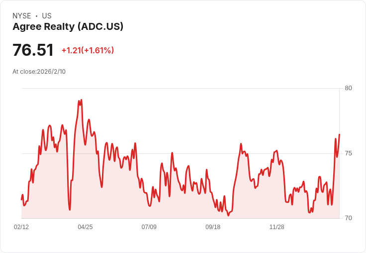 Agree Realty於2025年第四季獲得穩定成長,並將2026年投資指導上調至14億至16億美元,預測每股AFFO增長5.4%。