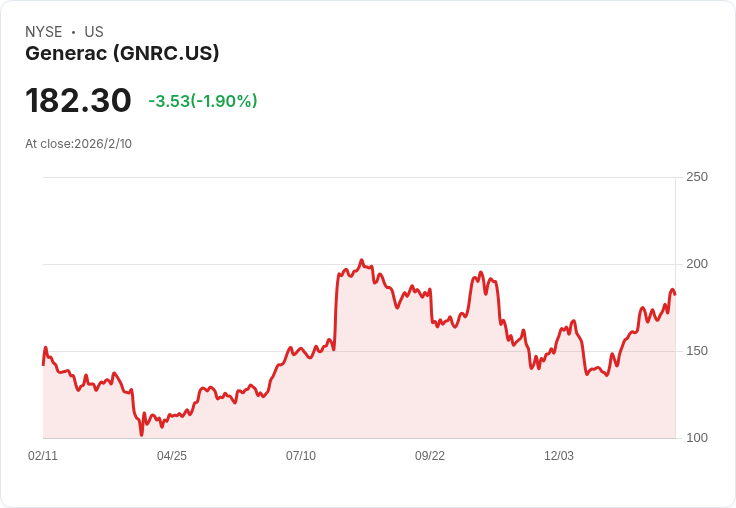 Generac Holdings Inc.(GNRC)在最新財報中顯示,雖然第四季度的營收和調整後收益均未達華爾街預期,但資料中心需求的強勁表現令其股價在週三的盤前交易中上漲了7.8%。該公司公佈的淨銷售額為10.9億美元,同比下降12%,且低於市場預期的11.6億美元。調整後的淨收入為9500萬美元,每股收益1.61美元,同樣不及分析師預估的1.77美元,並較去年同期的1.68億美元大幅下滑。
