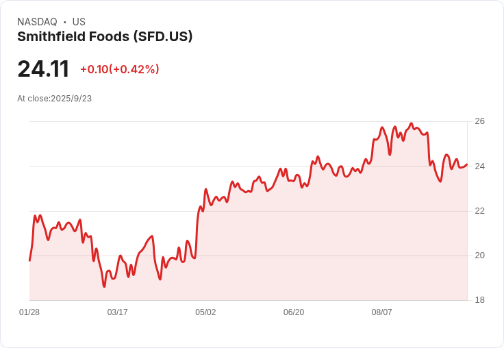 史密斯菲爾德食品公司確認以每股23.35美元的價格發行1953萬股普通股,吸引投資者關注。