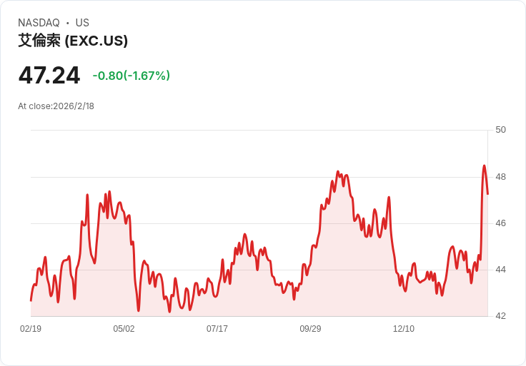 此外,埃克塞隆於2月12日公佈了超出市場預期的2025年第四季調整後每股盈餘(EPS),達到0.59美元,雖然較去年同期下降7.8%。季度營收為54.1億美元,低於華爾街預估的55.1至55.4億美元範圍,但運營費用減少3.3%,使得運營收入增長8%至11.9億美元。