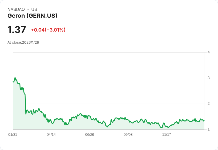 新聞:隨著生技股市場的波動,Geron Corporation(NASDAQ:GERN)成為投資者關注的焦點。TD Cowen分析師Tara Bancroft於1月29日宣佈,將該公司的價格目標由$4下調至$3,同時保持“買入”的評級,此舉反映出對即將公佈的2025年第四季度財報的預期調整。