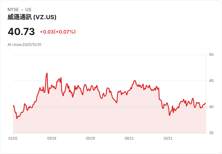 威瑞森(VZ)股價上漲6美分,達到40.76美元,選擇權交易量輕微,市場對其未來表現持樂觀態度。
