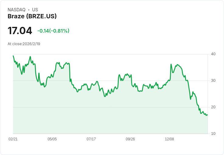 在一個令人驚訝的舉動中,Solel Partners LP在2026年第四季增持了Braze(NASDAQ:BRZE)526,300股,這筆交易估計價值1559萬美元。根據最新的SEC檔案顯示,這使得該基金對Braze的總持股量達到127萬2200股,市值為4362萬美元。雖然Braze的股價已經下降近60%,但該基金似乎認為這是一個值得投資的機會。