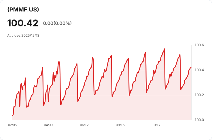 投資者們注意到,iShares Prime貨幣市場ETF(程式碼:PMMF)近日宣佈其每月分配金額為$0.3301。這項分紅將於12月24日發放,適用於截至12月19日的股東,而在同一天進行的除息交易則意味著新買入的投資者無法獲得此次分紅。根據最新資料,截至12月17日,該ETF的30天SEC收益率達到了3.90%,顯示出其穩健的回報潛力。