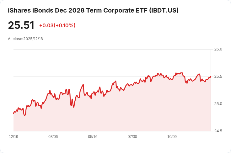 投資者們注意了!iShares iBonds Dec 2028 Term Corporate ETF(IBDT)近日宣佈將發放每股$0.0991的月度股息,這一訊息無疑對持有該基金的投資者來說是一個好消息。根據公告,此次股息將於12月24日支付,而登記截至日期則是12月19日,這意味著在此之前購買股票的投資者都能享受到此次分紅。