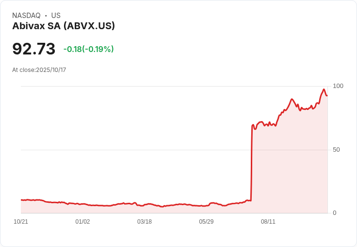巴克萊分析師Etzer Darout在10月13日宣佈,針對臨床階段生技公司ABIVAX(NASDAQ:ABVX)給予超配評級,並設定了142美元的目標價格。此舉引起市場關注,因為該公司專注於開發抗病毒化合物及治療疫苗,旨在應對嚴重傳染病。