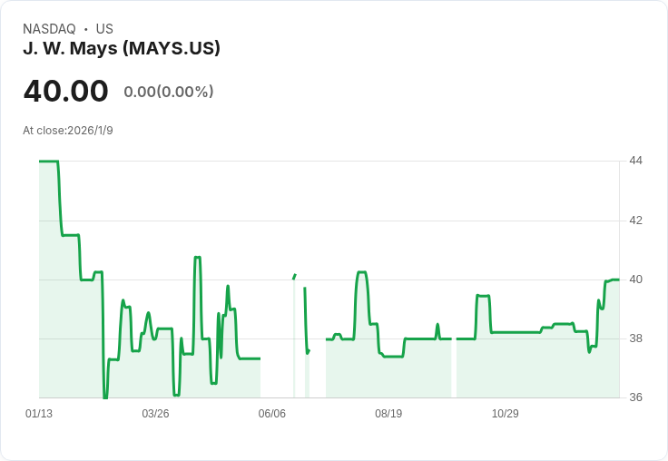 J.W. Mays, Inc.(NASDAQ:MAYS)近期引起市場關注,其股價目前約為40美元,與預估的公允價值35.61美元相距不遠。這一評估基於兩階段自由現金流折現模型(DCF),此方法考量了公司未來十年的現金流並將其折現至今日價值。