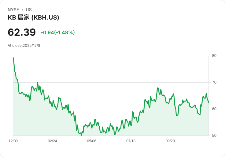 KB Home 最近發布的第三季財報超出預期,並且該公司還宣佈了一項高達10億美元的股票回購計劃,這些因素共同促使分析師們對其未來表現持樂觀態度。根據 UBS、Raymond James 和 BofA 的評估,KB Home 的公平價值已小幅上調至每股約68.00美元,反映出更高的內在價值和風險報酬比。
