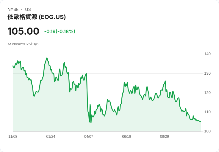 EOG Resources, Inc.是一家總部位於美國的能源公司,專注於石油和天然氣的勘探、生產和開發。公司擁有多元化的高回報資產組合,主要分佈在北美,包括德克薩斯州的Delaware盆地和Eagle Ford,以及俄亥俄州的Utica等地。EOG以其嚴格的資本紀律和持續的技術創新著稱,致力於在行業週期中為股東創造可持續的價值。