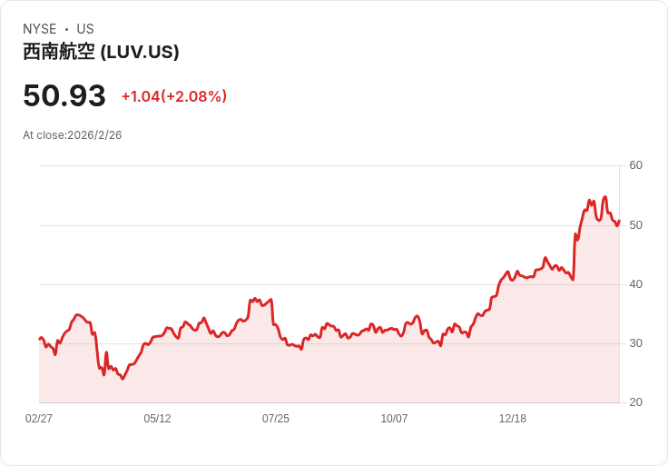 值得注意的是,西南航空的股價在過去一年中飆升68%,並且今年迄今已上漲23%,主要得益於業務模式的改革和盈利前景的改善。公司近期發布強勁指導,預計2026年每股調整收益將達到至少4美元,相比之下2025年的預期僅為93美分。此外,結構性變革如改用指定座位、新增額外腿部空間選項及某些票價的行李費等附加收入來源也受到了投資者的歡迎。