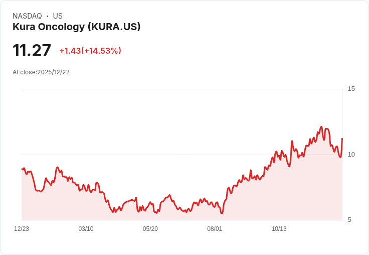 Kura Oncology在Jim Cramer的節目中獲得關注,股價上漲12%。他提及該公司剛獲FDA批准的抗癌藥物Komzifti,引發投資者興趣。