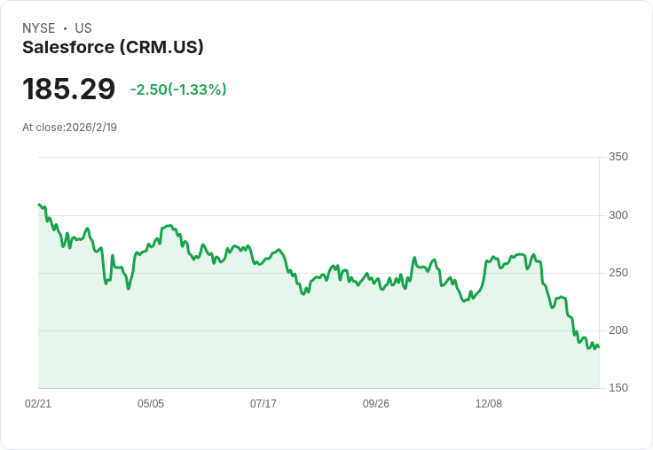 瑞穗證券分析師Gregg Moskowitz於2月17日重申了Salesforce Incorporated(NYSE: CRM)的「跑贏大盤」評級,然而將其目標價格從340美元下調至280美元。儘管如此,此價格仍顯示出約48%的潛在上漲空間。Moskowitz指出,由於市場對人工智慧(AI)影響的擔憂,目前整體軟體行業情緒低迷,但他相信長期投資者能找到一些具吸引力的機會。