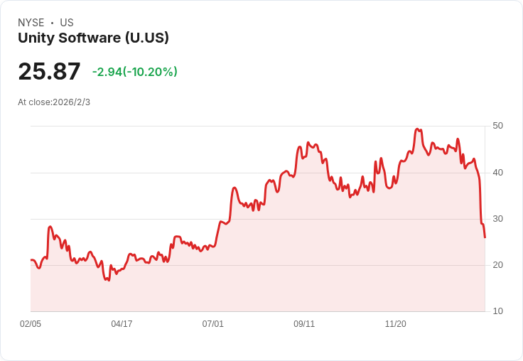 Unity軟體股價在過去六個交易日內下滑超過37%,截至週三再下跌6%,引發市場關注其未來成長潛力。