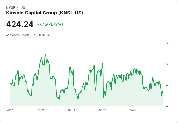 隨著市場動向,Kinsale Capital Group, Inc.(KNSL)在保險行業中脫穎而出,其股票截至9月5日交易價格為455.40美元。根據分析,該公司自2020年以來總收入年均增長率達36%,淨利潤從8800萬美元飆升至414億美元,顯示出其卓越的執行能力和盈利能力的顯著提升。儘管內部持股僅佔5.2%,但其盈利指標依然強勁,投資回報超過10%。