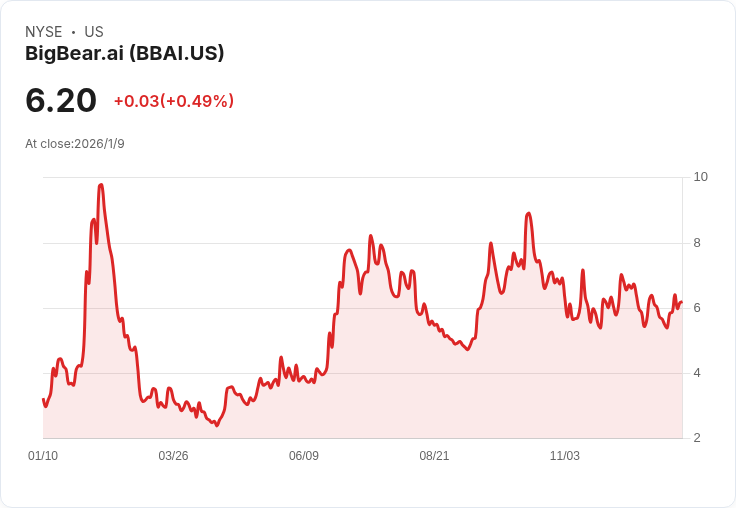 新聞:隨著人工智慧(AI)市場的火熱,許多股票已經翻倍,但BigBear.ai(NYSE: BBAI)的股價卻在過去三個月內下降了超過20%。這家公司雖然與Palantir有相似之處,均提供針對美國軍方和政府客戶的安全相關服務,但其產品的利基應用限制了新客戶的吸引力。