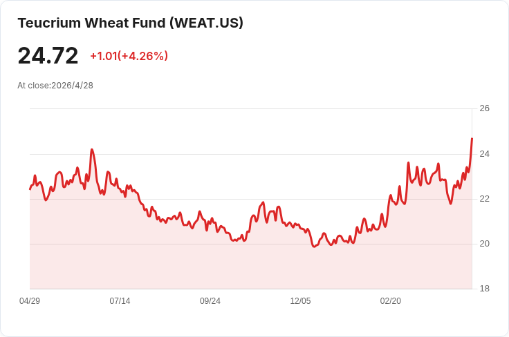 美國小麥期貨週二跳空上揚,創下自2024年6月以來的最高價位,反映出美國平原地區持續乾旱與肥料成本飆升對供應端的雙重壓力。芝加哥期貨交易所(CBOT)7月交割小麥上漲4.5%,觸及每蒲式耳6.58 1/4美元,促使市場關注國內產量與全球供需風險。