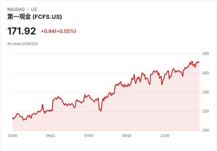 FirstCash 在最近的財報中表現亮眼,不僅超越了市場預期的營收和淨利潤,同時還啟動了2026年的財政年度展望,顯示出其業務增長的潛力和信心。此外,公司目前的股息收益率為 0.98%,足以吸引尋求穩定回報的投資者。