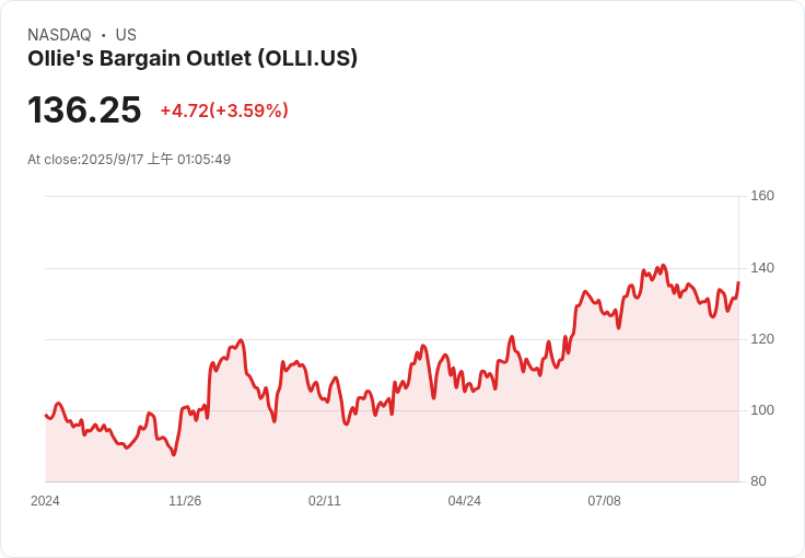 Ollie’s Bargain Outlet Holdings, Inc.(股票代號:OLLI)近期受到TQI Capital的正面評價,該公司於9月5日的股價為133.40美元。Ollie’s在第二季度表現亮眼,淨銷售額激增18%至6.8億美元,同時同店銷售增長5%。管理層利用充足的房地產資源及關閉交易管道,加快了擴張步伐,僅在第二季度便新增29家門店,今年迄今已達54家,超越以往全年紀錄。