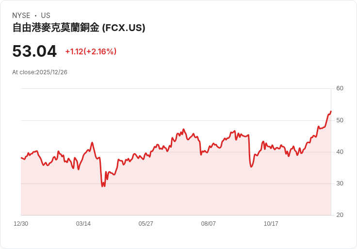 Freeport-McMoRan因銅價創下新高而股價上漲,Wells Fargo調升目標價至55美元,展現強勁需求與供應緊張的市場前景。