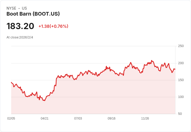 Boot Barn 第三季營收706百萬美元,同比增長16%,EPS為2.79美元,同店銷售上升5.7%。公司提高2026年全年預測至22.5億美元。
