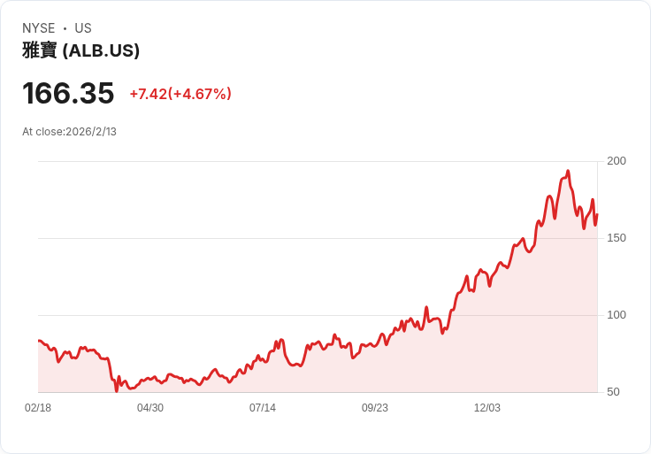 在週二的交易中,阿爾比馬勒(ALB)股價上漲2%,這是因為美國銀行將其評級從中立上調至買進,並將目標價格從167美元提升至190美元。分析師認為,最近14%的回撤提供了一個吸引人的入場點,尤其是在公司成功度過鋰價下滑後,正準備迎接復甦。